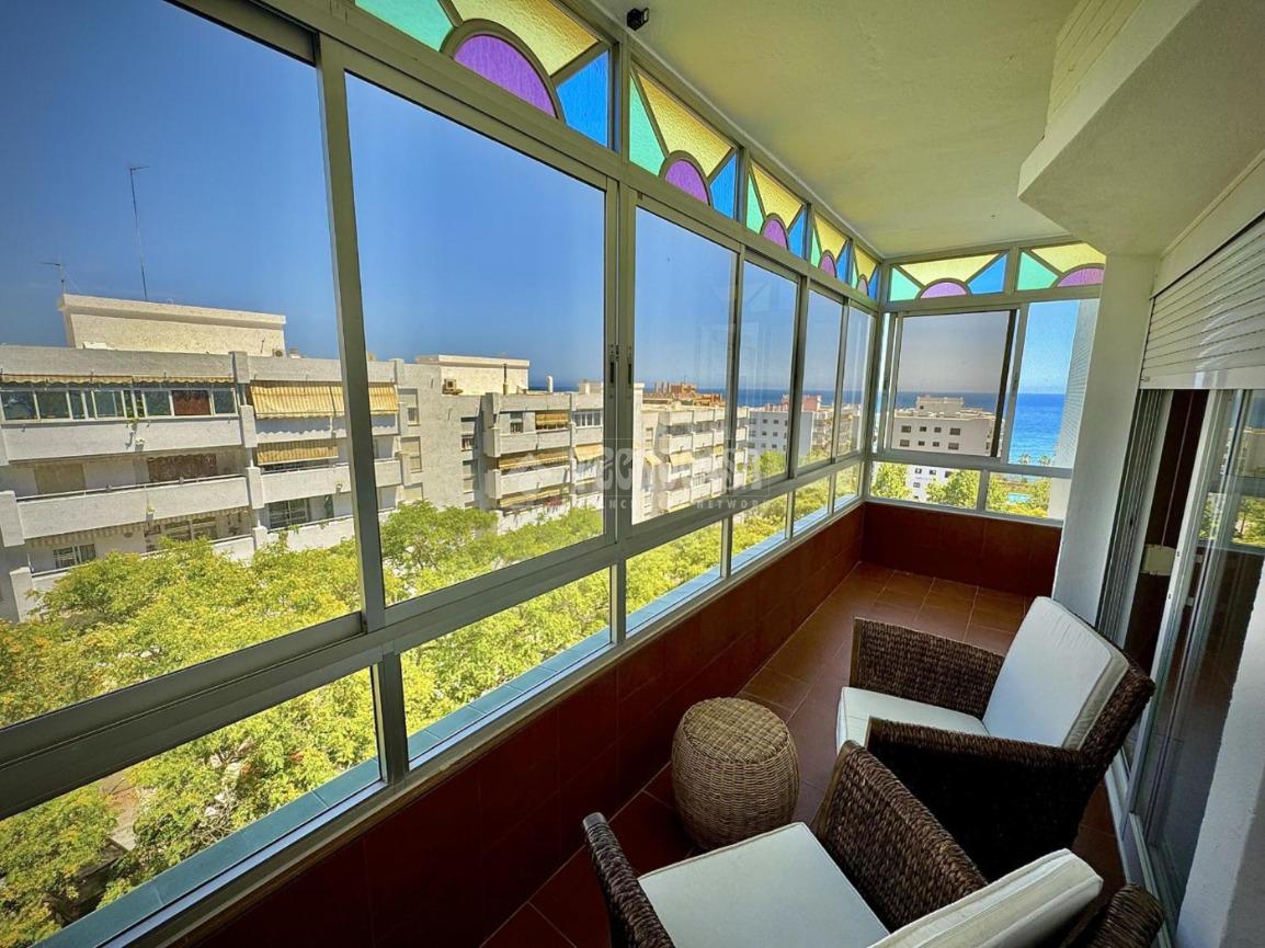 Magnífico piso en venta en la zona de Huerta de los Cristales, Marbella. La vivienda, recientemente reformada, se encuentra en una tercera planta con ascensor y ofrece un diseño moderno y funcional. Consta de 2 amplios dormitorios, 2 baños completos, cocina equipada y un luminoso salón con salida al exterior y vistas al mar.
